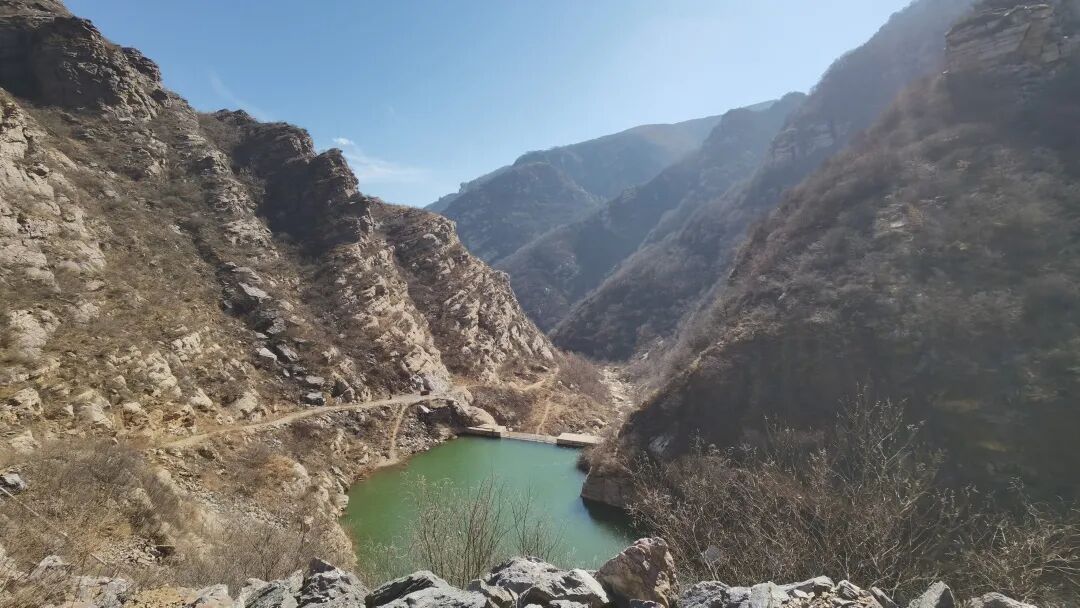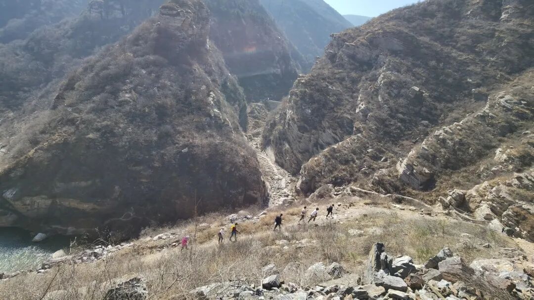 爬過一座峰,經(jīng)過一個水庫,風景正好,先鋒隊伍略做停留,等一下后面的隊伍。