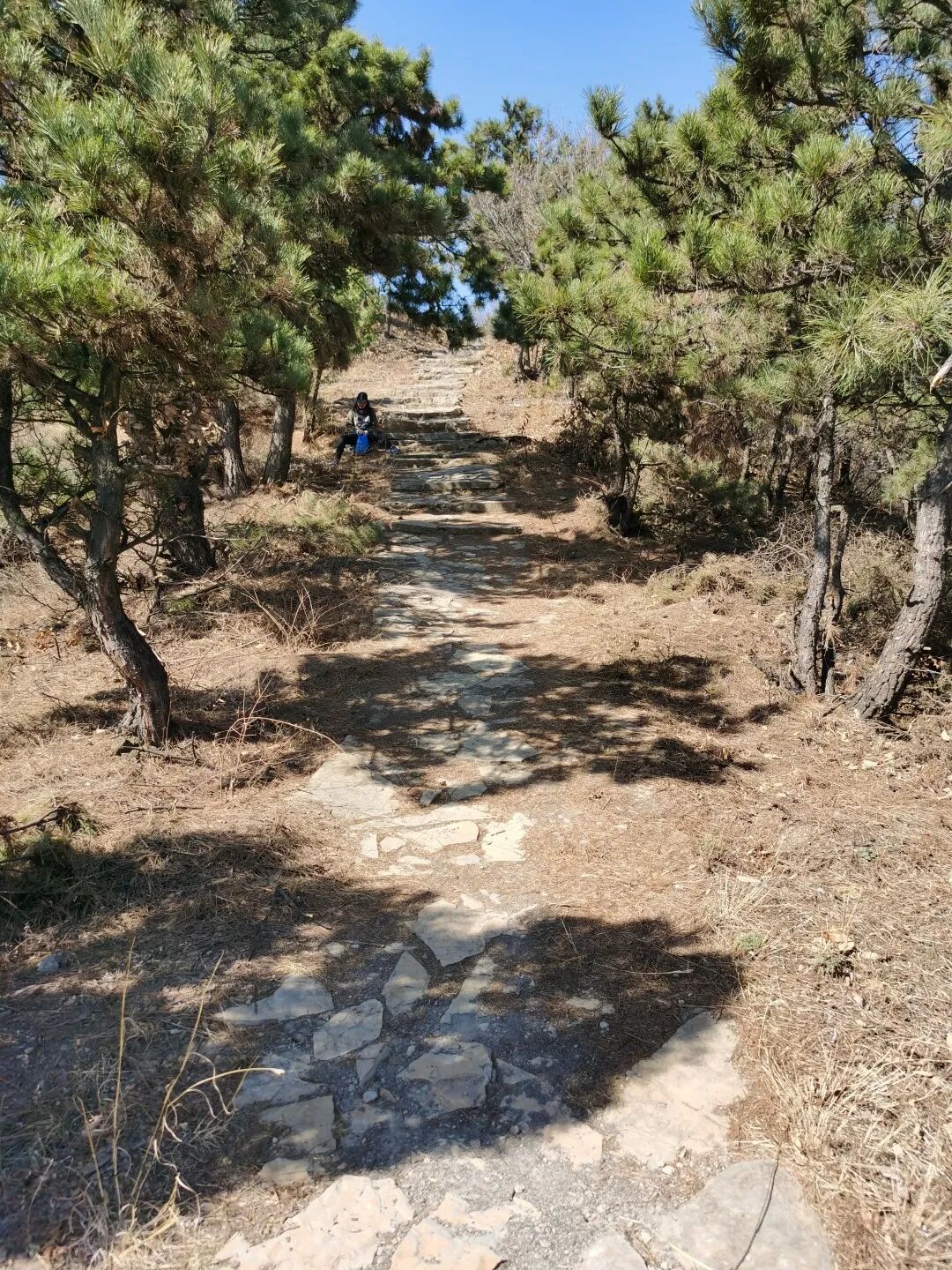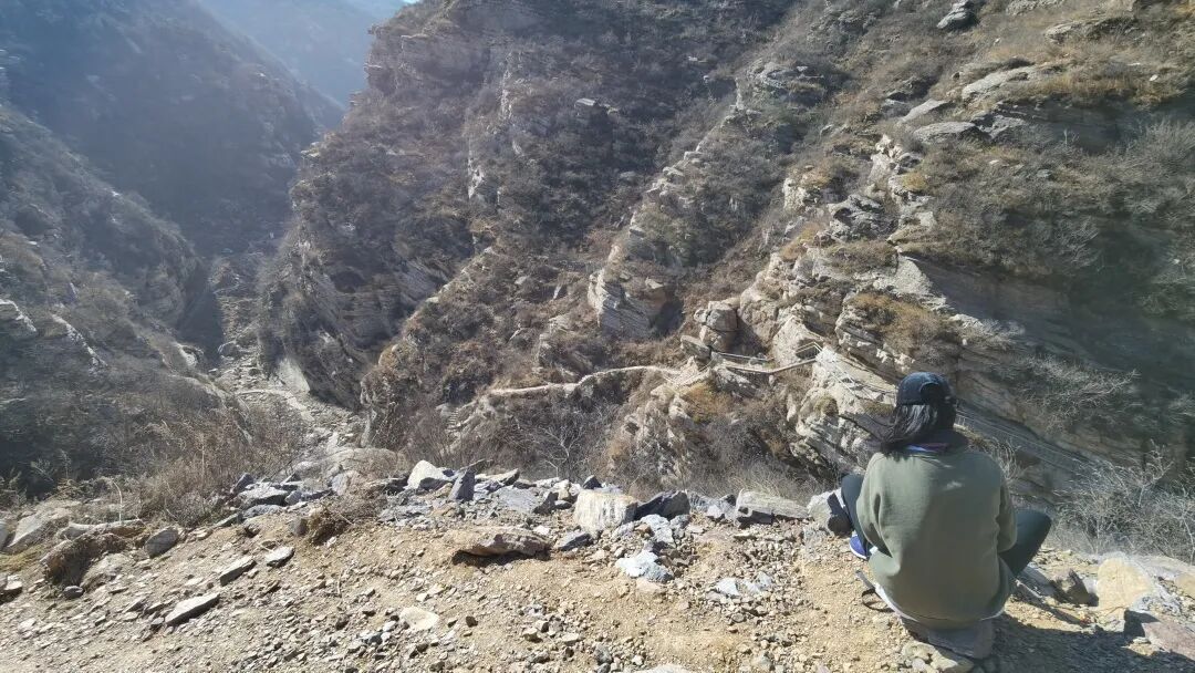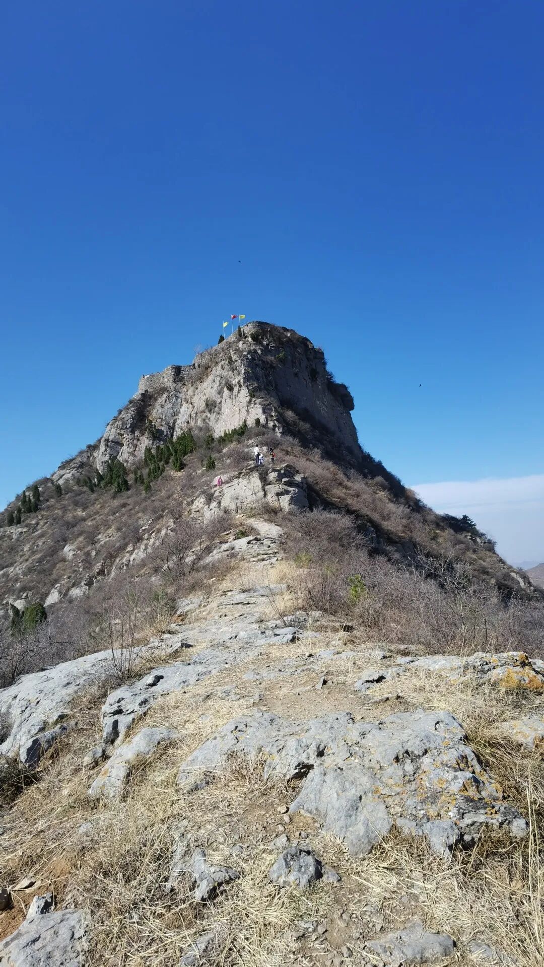 到達山頂,發(fā)現(xiàn)這座山不夠高,遠眺過去,臨近的山峰高高的突起,險峻的山頭上有一座廟,不服輸?shù)哪昱锨嗟巧綀F繼續(xù)前進。